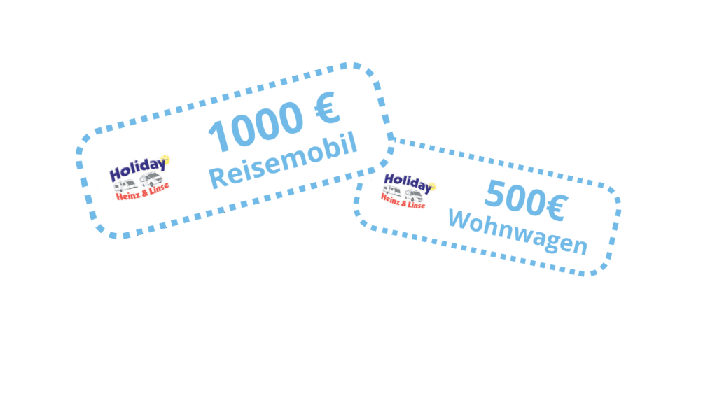 Nutzen Sie das Fest, um richtig zu sparen: Erhalten Sie Gutscheine, mit denen Sie zusätzlich 1.000 € auf ein neues Reisemobil oder 500 € auf einen neuen Wohnwagen sparen können!